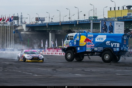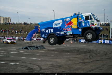 Особенно сильно мне понравилось выступление «KAMAZ Master», увидеть столь огромный автомобиль, да еще и рассмотреть вблизи - такое удается не каждый день! С удивлением узнал, что кузов у него внутри пустой. :) Это я еще ничего не говорил о том, что во время показательных выступлений он прыгал и DRIFтил!
