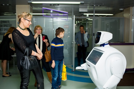 Сотрудник вуза запоминает всех, с кем он беседовал раньше. В его памяти более 400 000 речевых модулей. Он поддерживает беседы на любые темы, владеет английским и китайским языками.